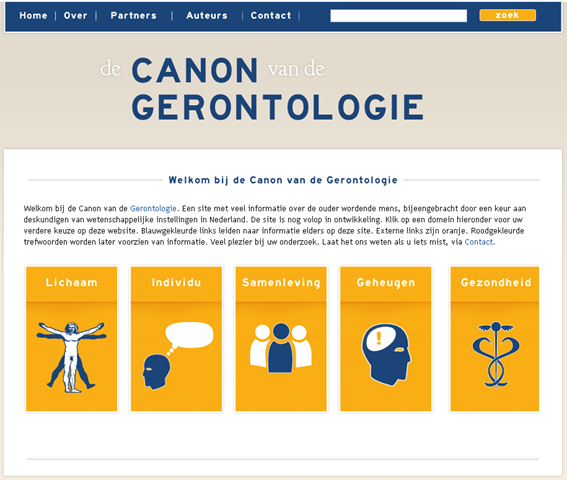 De Canonsite is een mooie vormgegeven gerontologische site met een duijdelijke indeling: lichaam; Individu; Samenleving; Geheugen; Gezondheid. Ik mis nog een rubriek ‘Oudere migranten’.